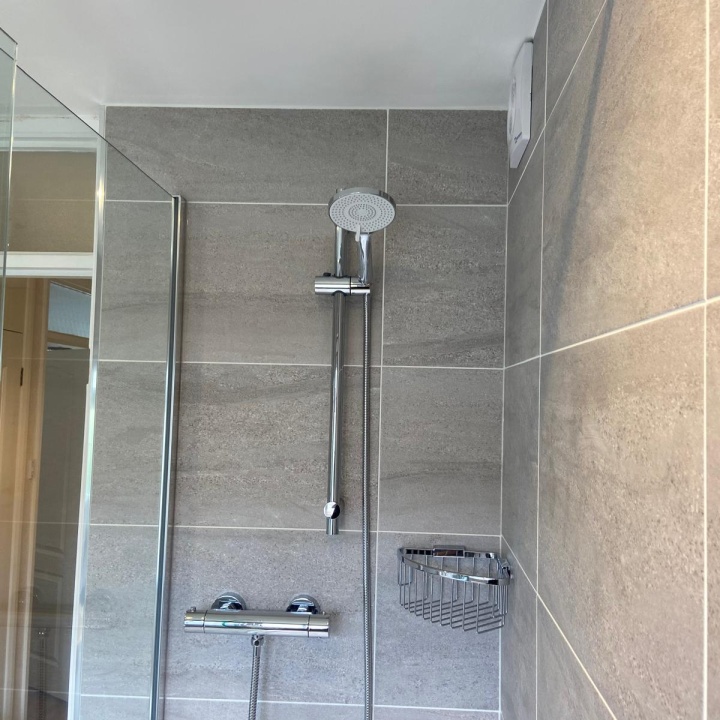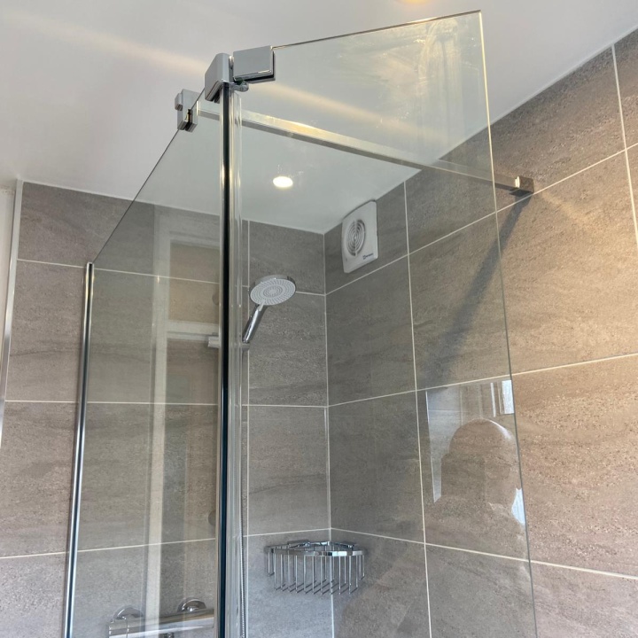 We used a Kudos shower panel with a fold away deflector panel, which was ideal for the customer because of its ability to fold away flat and keep the room looking minimalistic.