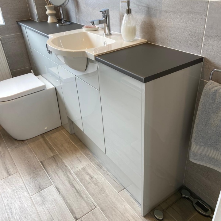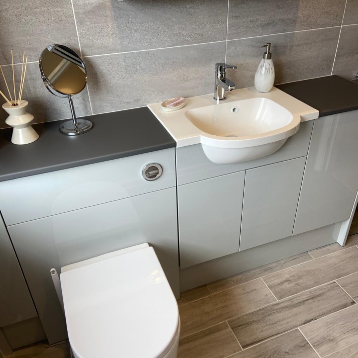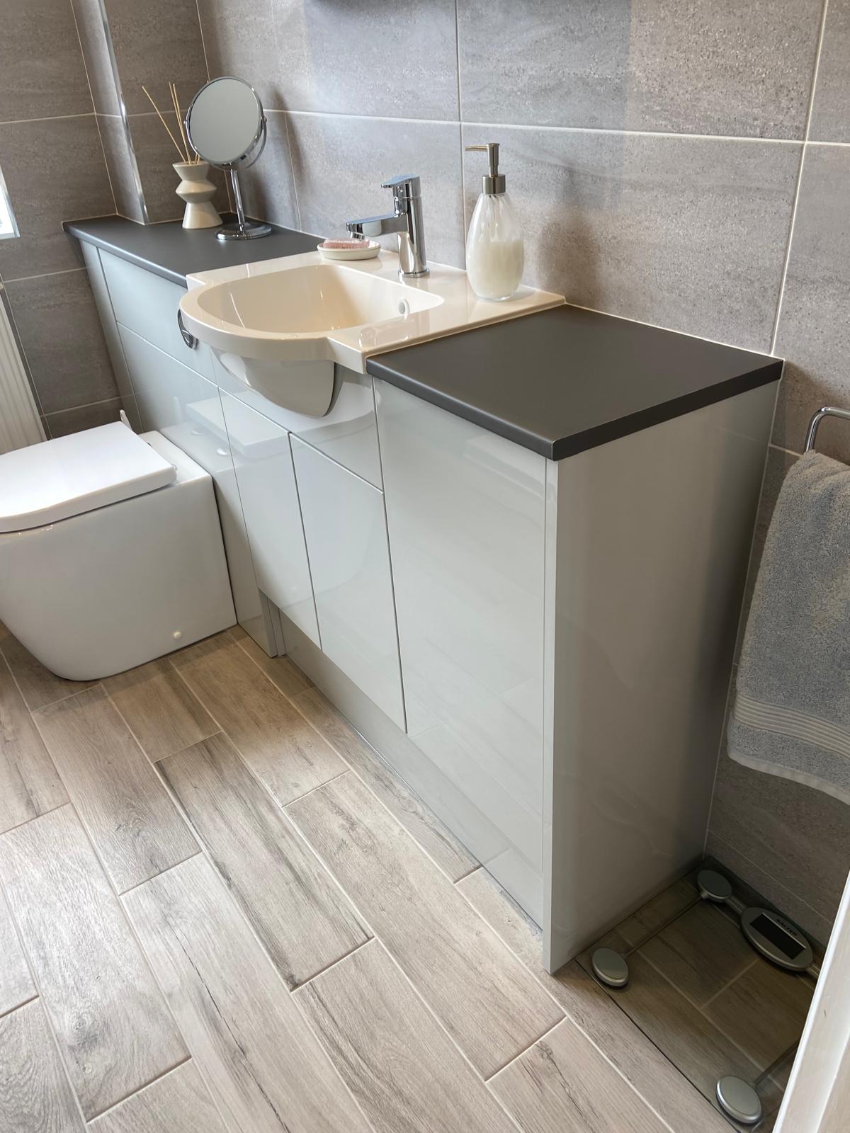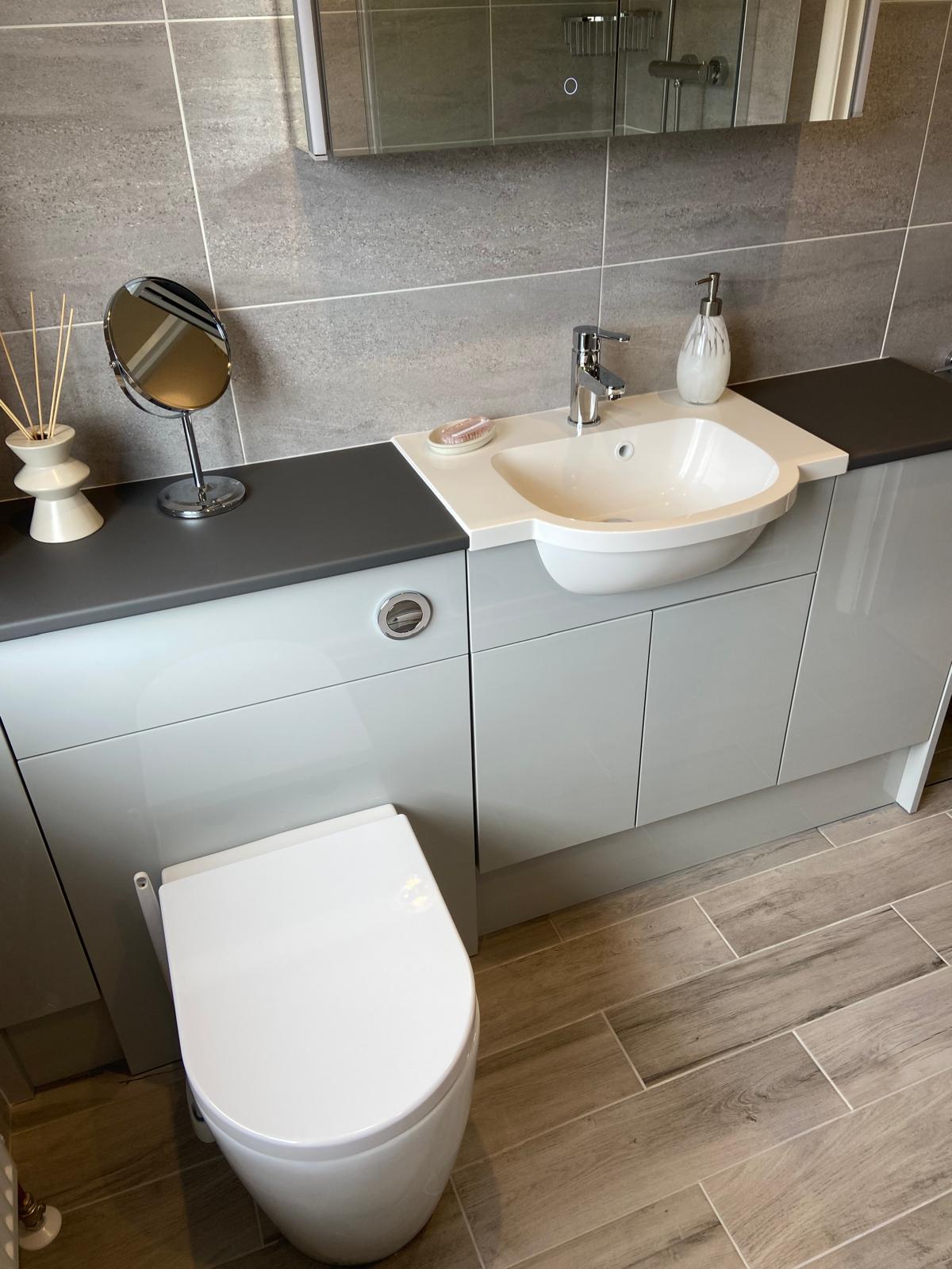 The customer chose to use JJO fitted furniture range in Grey Mist Gloss colour with a semi recessed basin & BTW pan from the R2 range.