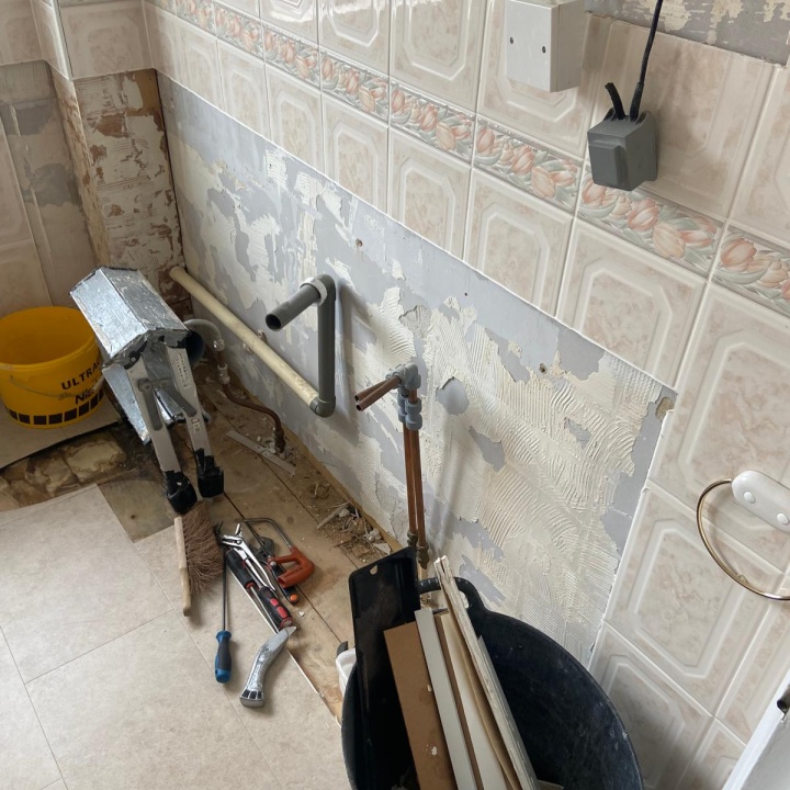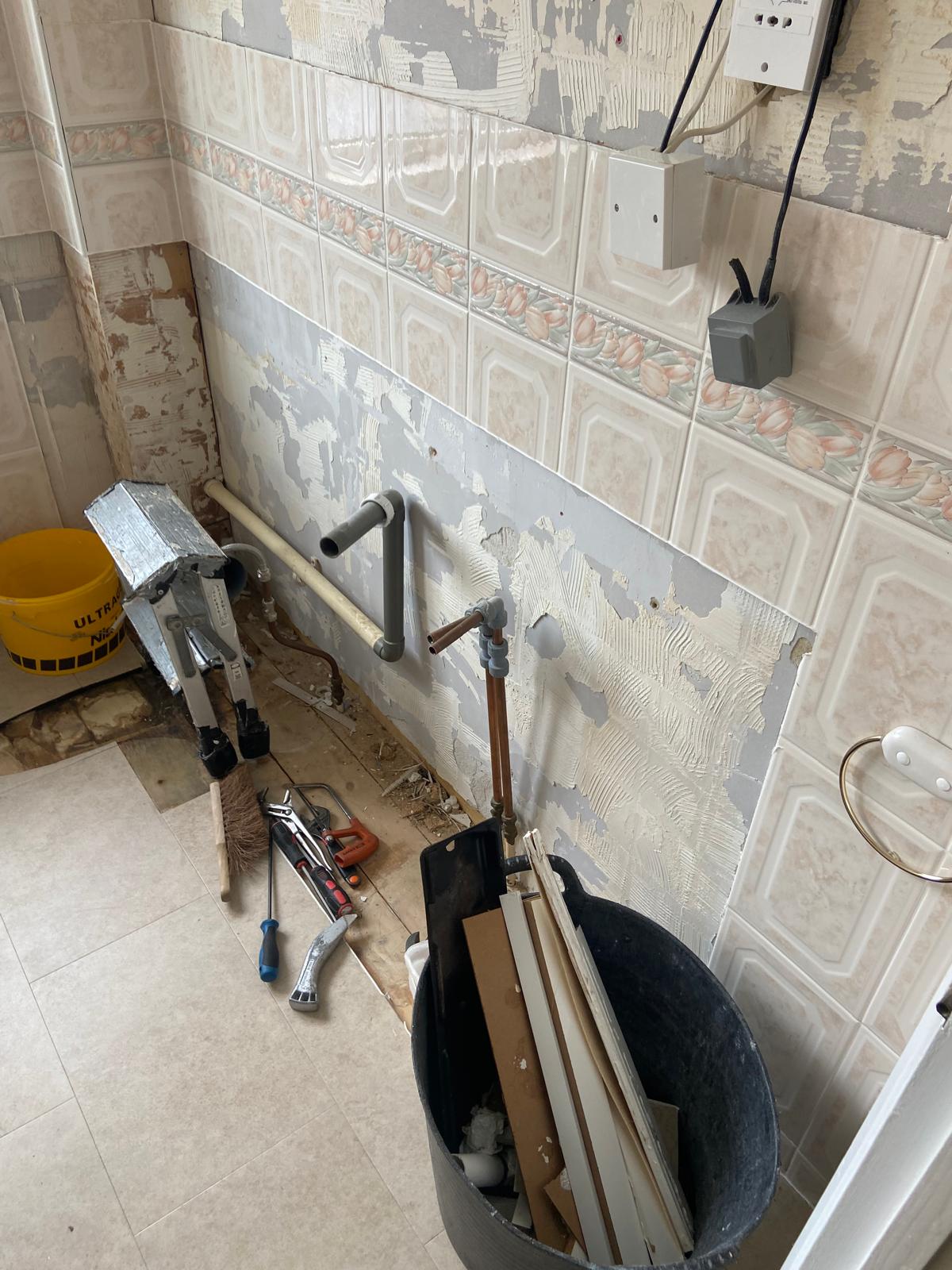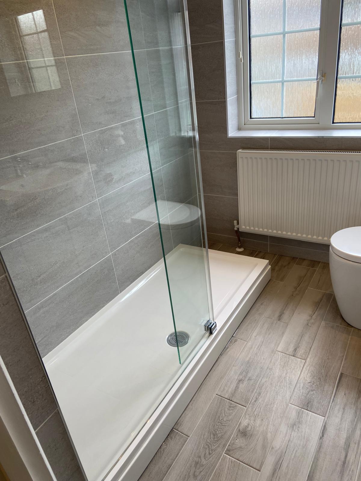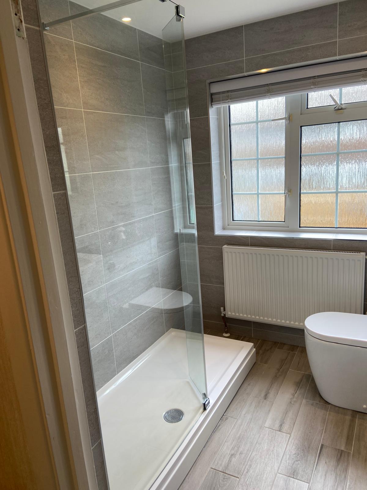 The customer decided that a complete overhaul was needed on this bathroom to bring the room back to life and to take out the original bath and replace the bath with a more convenient walk in shower. We soon got to work by stripping everything out of the room. We encountered a slight issue with the existing shower pump which was installed poorly, that being the case we were hesitant to use that pump again, so our recommendation was to replace the pump & install in the airing cupboard than next to the tray and get it working correctly and within the building regulations. The customer was very happy to go ahead with the change.